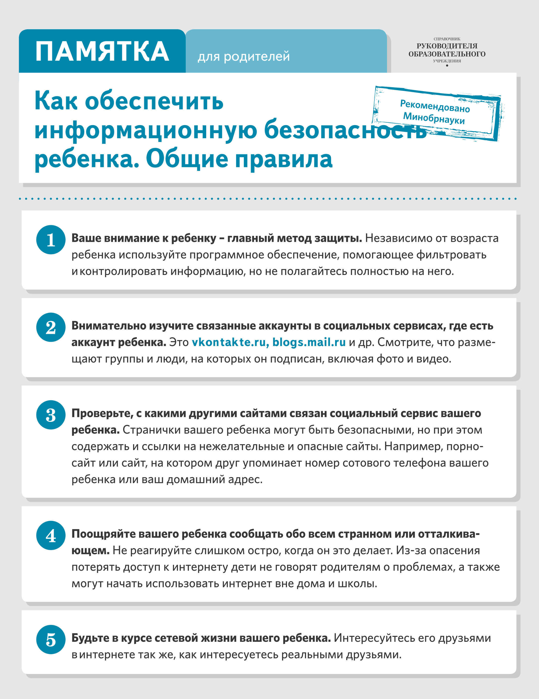 Как обеспечить информационную безопасность ребёнка. Памятка родителям.