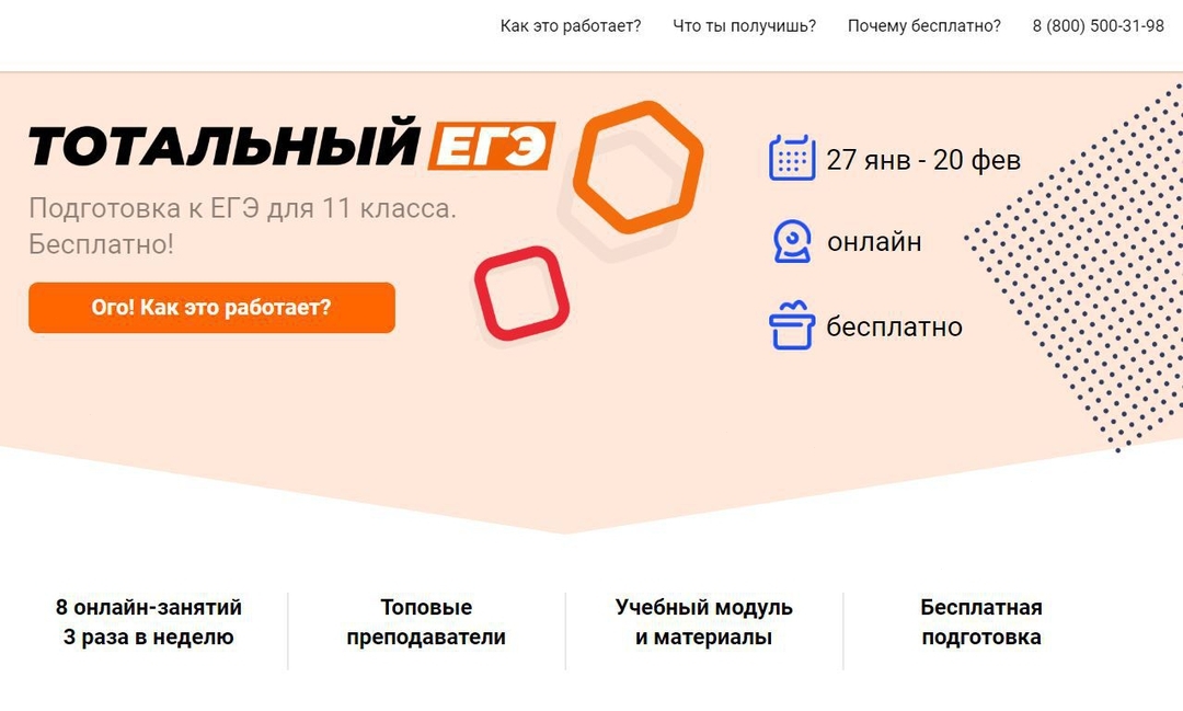 Каждый урок даёт возможность в прямом эфире задать вопрос преподавателю. Длительность занятия — полтора часа. Главные принципы тренинга: структурирование знаний и повторение ключевых тем по предметам; проработка самых сложных вопросов и форматов; отработка заданий, которые по статистике имеют самый низкий процент успешного выполнения; демонстрации алгоритмов решения заданий с учетом критериев ЕГЭ. Завершит цикл проверка знаний, максимально приближенная по модели к реальному ЕГЭ, сообщает информационный портал mel.fm.