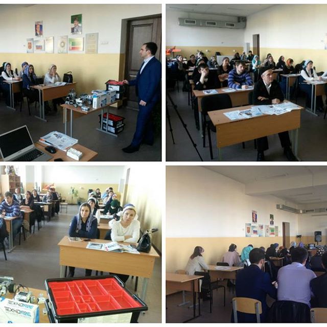 29.02.2016ibaykhanov В Республиканском центре детского юношеского (технического) творчества состоялся практический семинар «Изучение естественнонаучных и математических дисциплин с помощью образовательной робототехники».На семинар были приглашены 40 учителей физики, математики и информатики общеобразовательных организаций города Грозного.Тренинг по использованию образовательной робототехники был посвящен внедрению робототехники в общее образование для повышения качества освоения образовательных программ.Были рассмотрены современные робототехнические платформы для общего образования, программное обеспечение и другие материально-технические ресурсы для построения современного образовательного процесса.Практическая часть семинара состояла из демонстрации возможностей платформы Mindstorms EV3 и объяснения тем из разделов физики, математики и информатики с помощью робототехнических конструкций.