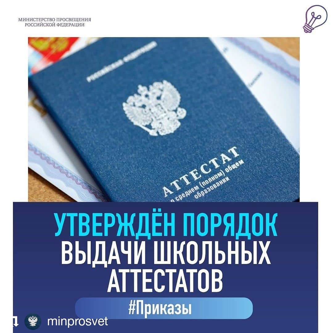 ⚡⚡ Опубликован приказ о порядке выдачи аттестатов о среднем общем образовании в этом году, утверждённом Минпросвещения.
