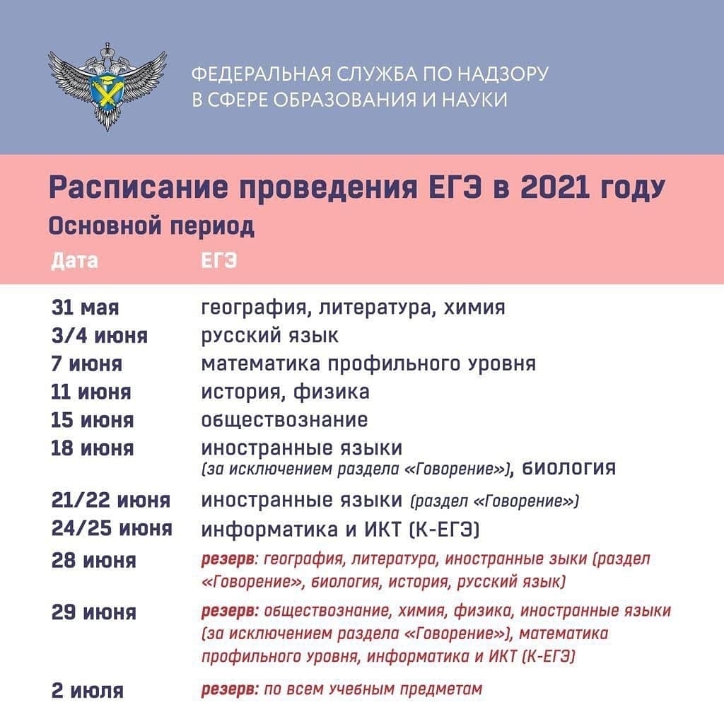 Подготовили инфографику с расписанием ЕГЭ в 2021 году.