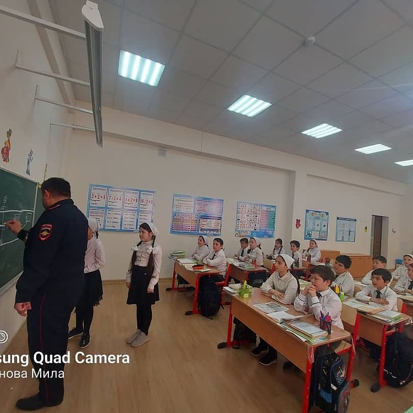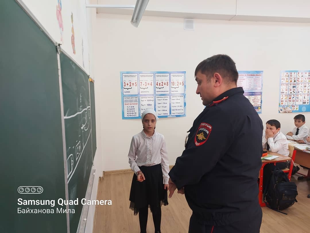 В ГБОУ "Гудермесская СШ им. У.А.Оздамирова" постоянно проводится совместная работа с сотрудниками ГИБДД по обучению школьников ПДД.