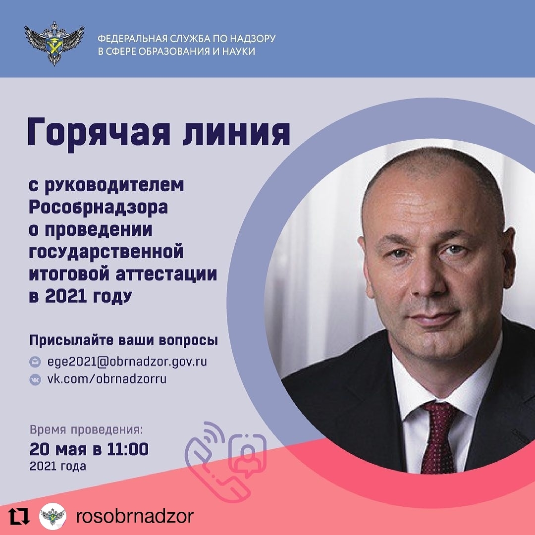 ❗️Важная новость❗️20 мая в 11:00 состоится горячая линия по вопросам государственной итоговой аттестации с руководителем Рособрнадзора Анзором Музаевым.