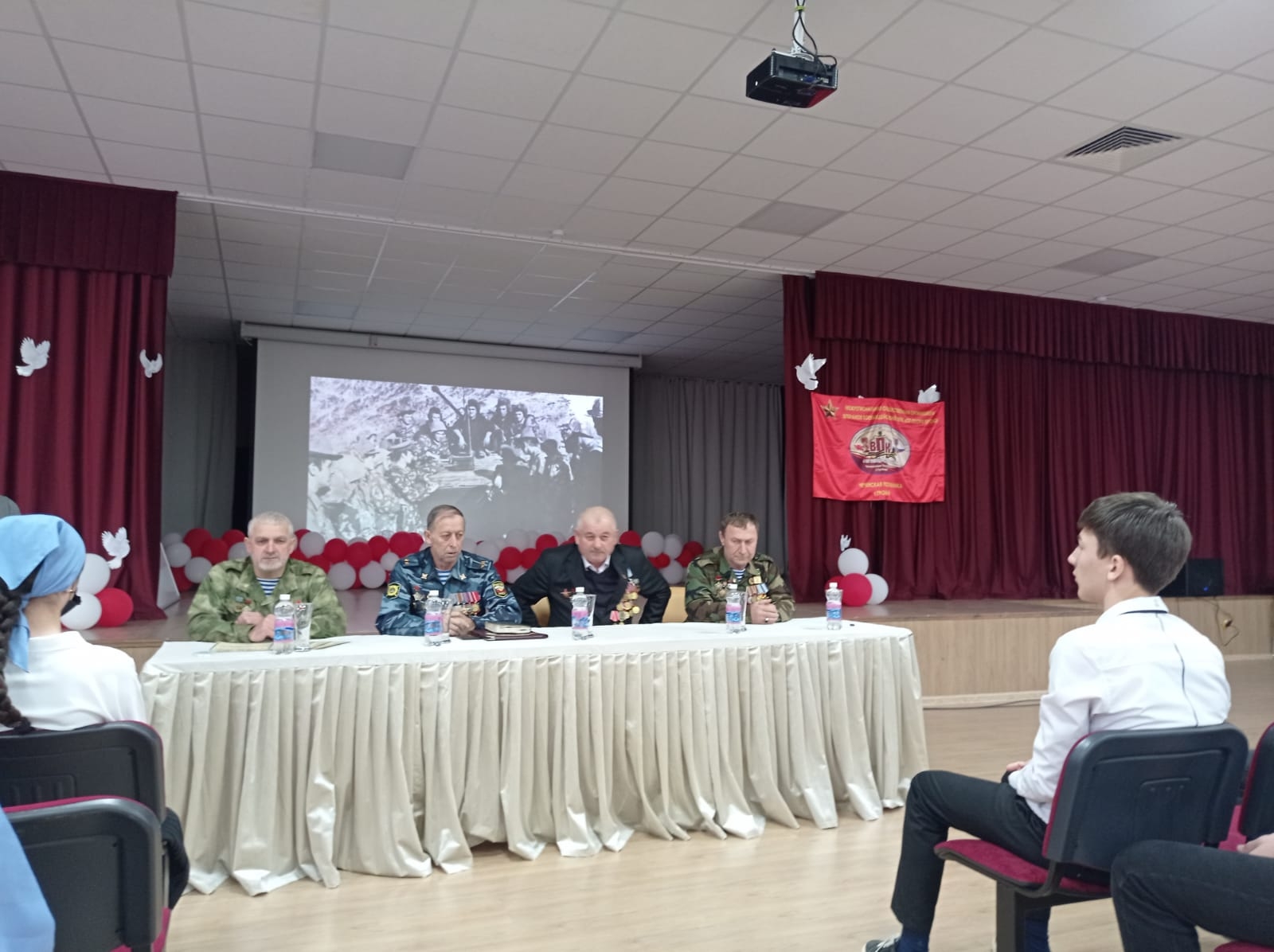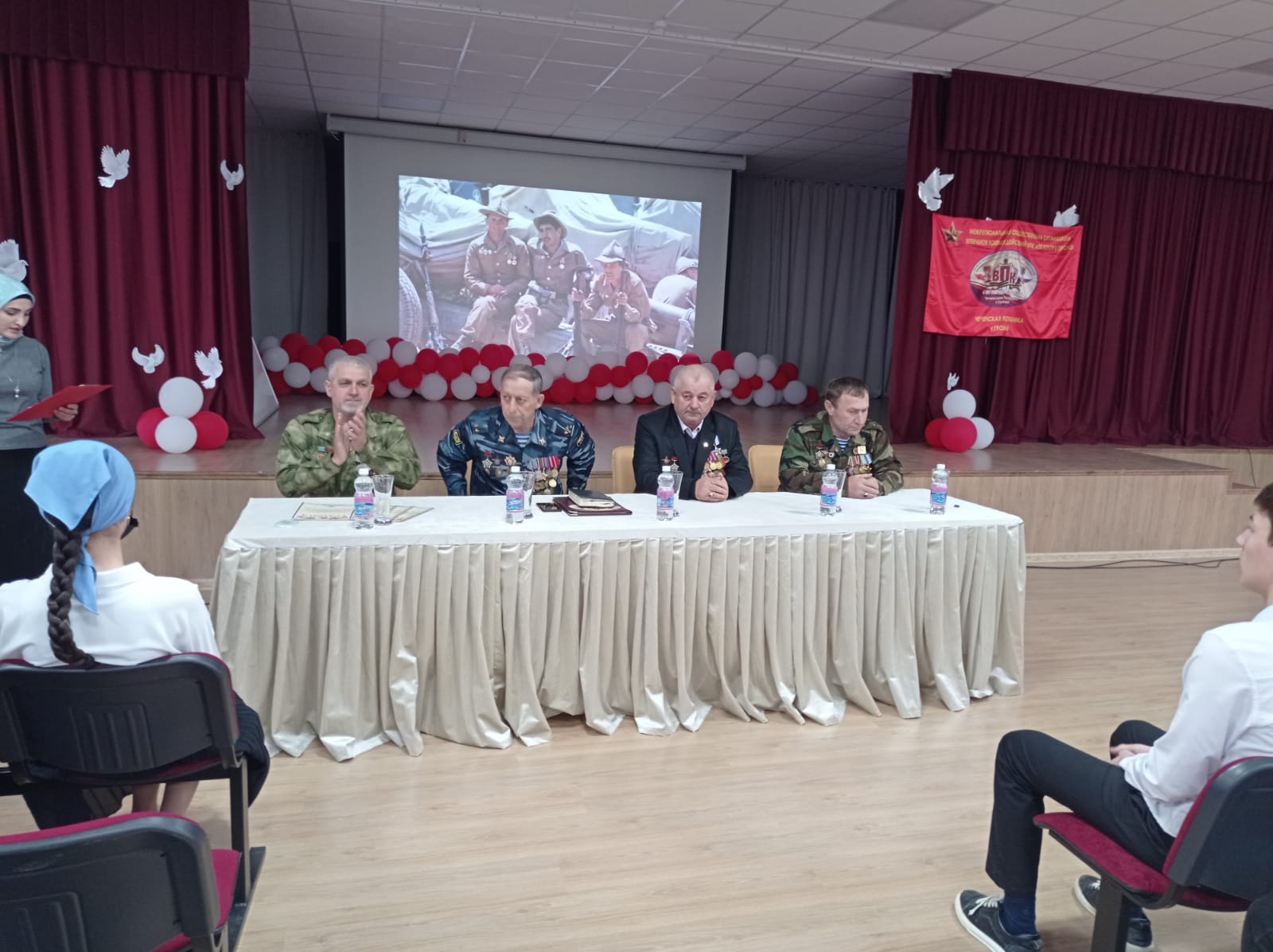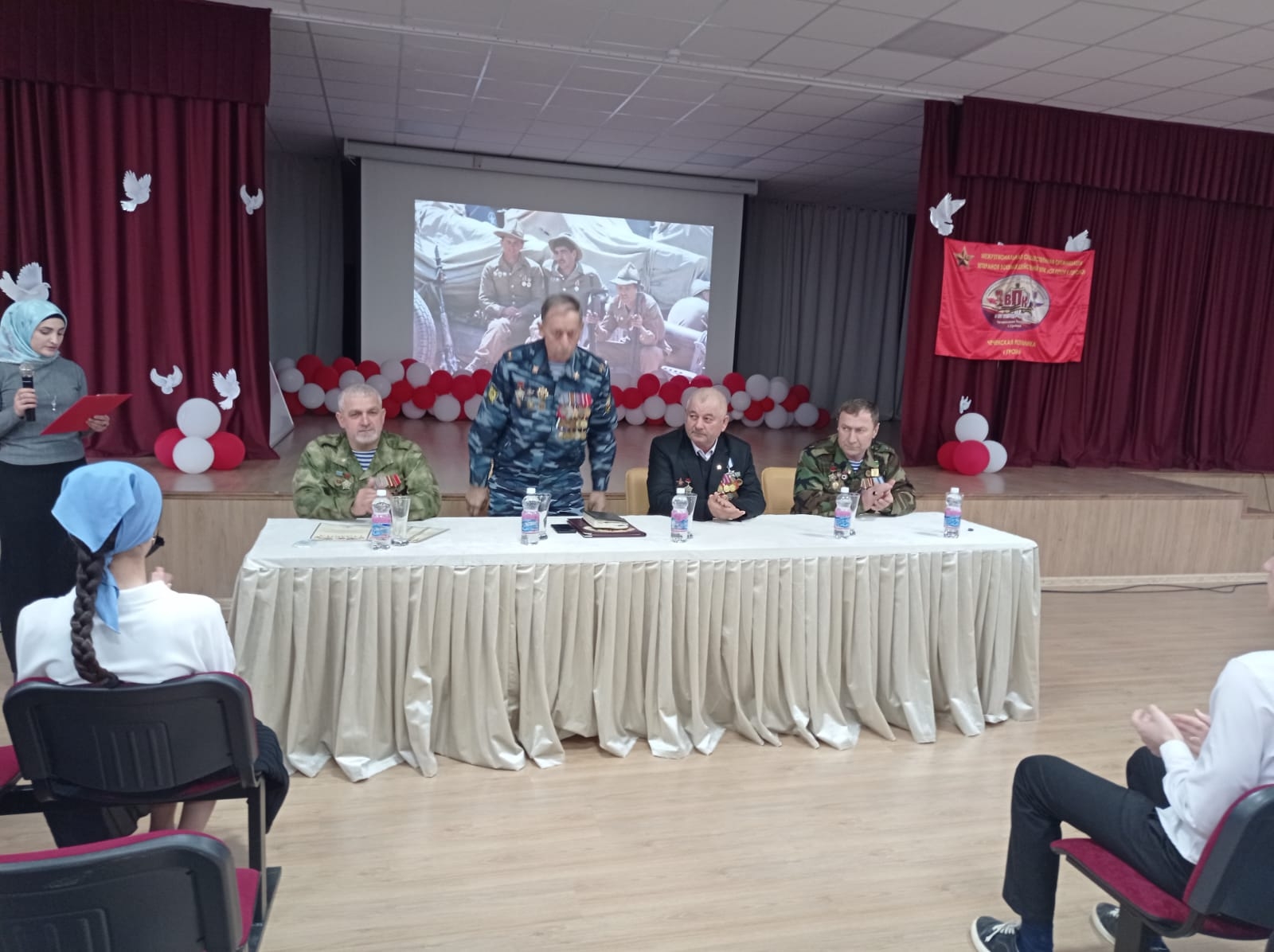 На этом мероприятии присутствовали представители межрегиональной общественной организации ветеранов боевых действий Военно-патриотический клуб «От героя к герою» им. Ахмат-Хаджи Кадырова: ветеран Афганистана, участник боевых действий МВД подполковник милиции в отставке Джамалуев Р. Р., первый заместитель, ветеран Афганистана, Новрзукаев И.А., Сайдуев И.Т., Мартынкаев Х.А., МАУК «Центр культуры и досуга» художественный руководитель Бантаева Х.Р., организатор Мусаева Х.А-С.