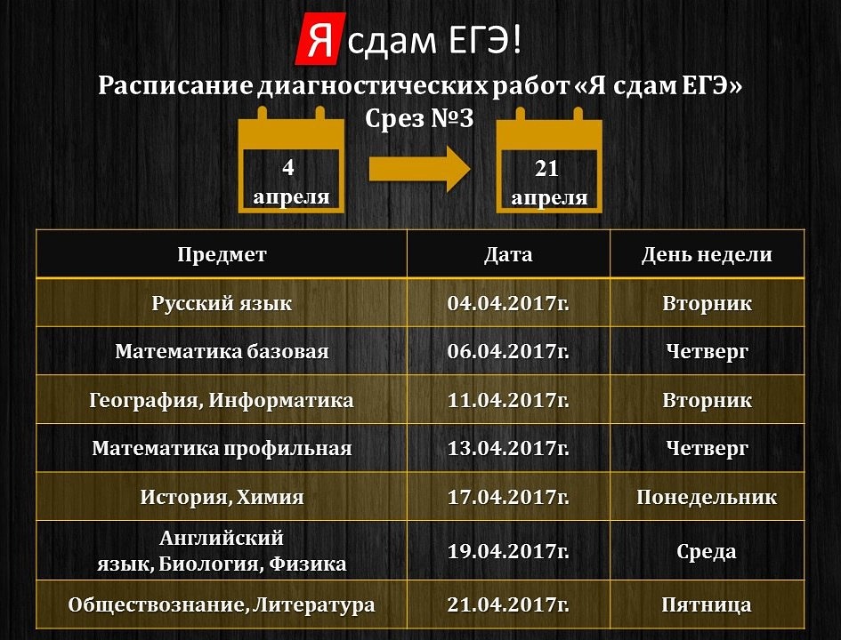 РАСПИСАНИЕ ТРЕТЬЕГО СРЕЗА ЗНАНИЙ В РАМКАХ ПРОЕКТА "Я СДАМ ЕГЭ!"