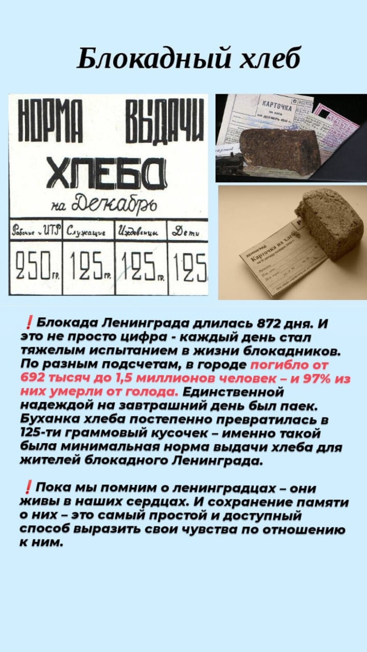 Когда-то жители блокадного Ленинграда смогли отстоять свой город, и, несмотря на это, у их истории не может быть счастливого конца, потому что такие события остаются с тобой навсегда: акция «Блокадный хлеб» позволит сохранить память о подвиге мирных жителей Ленинграда, переживших блокаду.