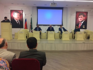 В составе Президиума совещания руководитель федеральной службы по надзору в сфере образования и науки РФ С. Кравцов, министр образования и науки ЧР И. Байханов, начальник Управления оценки качества общего образования Рособрнадзора Ю/ Егорова, руководитель центра оценки качества образования ЧР Ш. Лечиев и заместитель министра образования и науки ЧР И. Тааев.