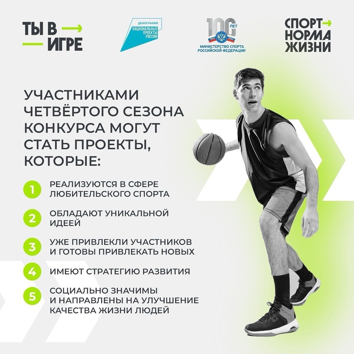 Прием заявок для участия в четвертом сезоне Всероссийского конкурса спортивных проектов «Ты в игре» продлится до 11 февраля 2024 года.