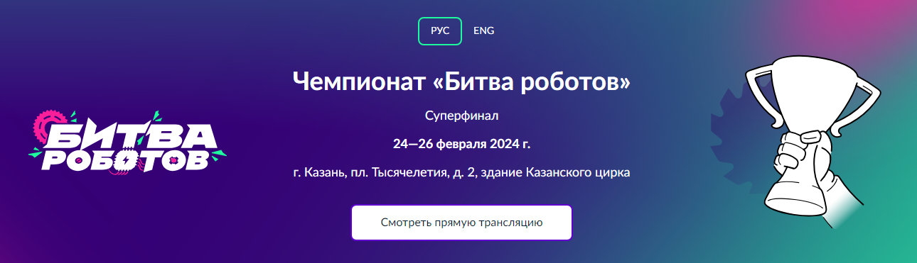 В соревнованиях примут участие профессиональные инженеры, студенты и любители робототехники из 10 стран!Все поединки можно будет смотреть онлайн. А где — как обычно, в нашем сообществе ВКонтакте.24 февраля с 15:30 мск пройдет 1/8 Суперфинала «Битвы роботов»: 16 команд встретятся на ринге, 8 из них выйдут в следующий этап.Подключайтесь к прямой трансляции по ссылке: vk.cc/cugXJu25 февраля с 15:30 мск пройдет 1/4 Суперфинала «Битвы роботов» и поединки за 9-12 места: 8 команд будут бороться за выход в полуфинал, а проигравшие разделят между собой 9-12 места.Подключайтесь к прямой трансляции по ссылке: vk.cc/cugXMf26 февраля с 19:00 мск пройдет 1/2 Суперфинала «Битвы роботов», поединки за 9-12 места и звание Чемпиона: решающие схватки определят команду, которая получит заветный кубок и главный приз.Подключайтесь к прямой трансляции по ссылке: vk.cc/cuh0ibНе пропустите сражения роботов, созданных лучшими робототехническими командами мира!