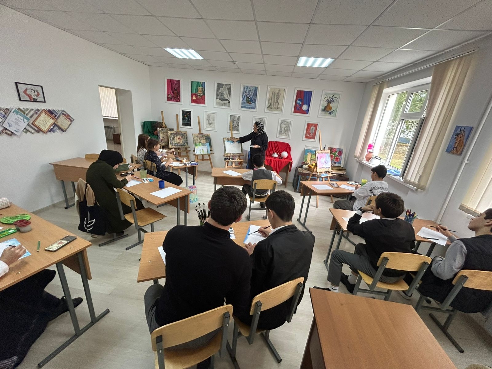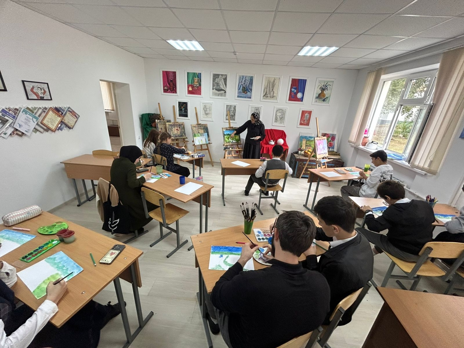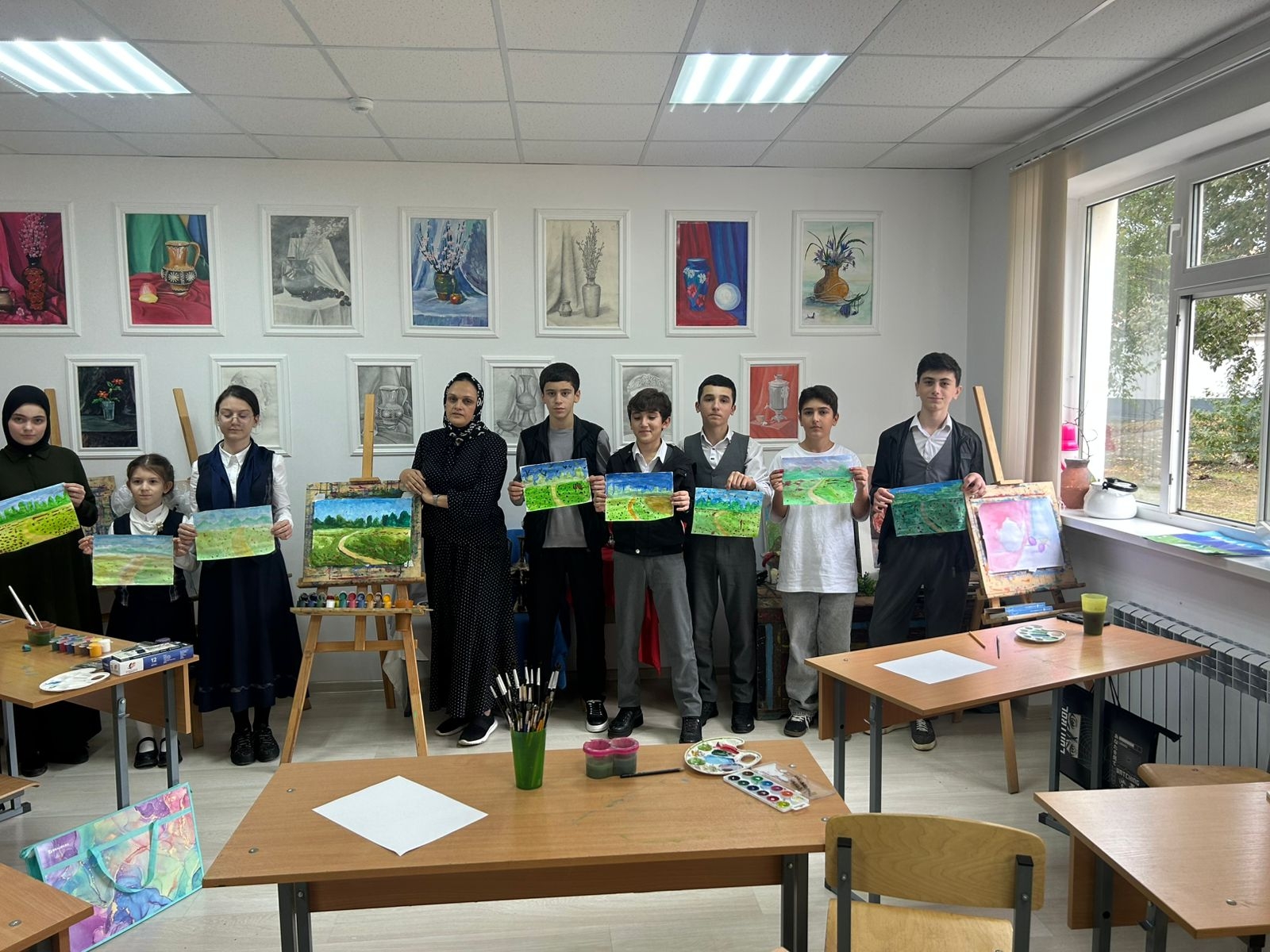 Сегодня 15 октября в ГБУ ДО «Детская школа искусств №9» г.Грозного провели для обучающихся 8 Г класса, мастер-класс по живописи «Рисуем вместе». Сопровождал их классный руководитель Сайдулаев А.Л.