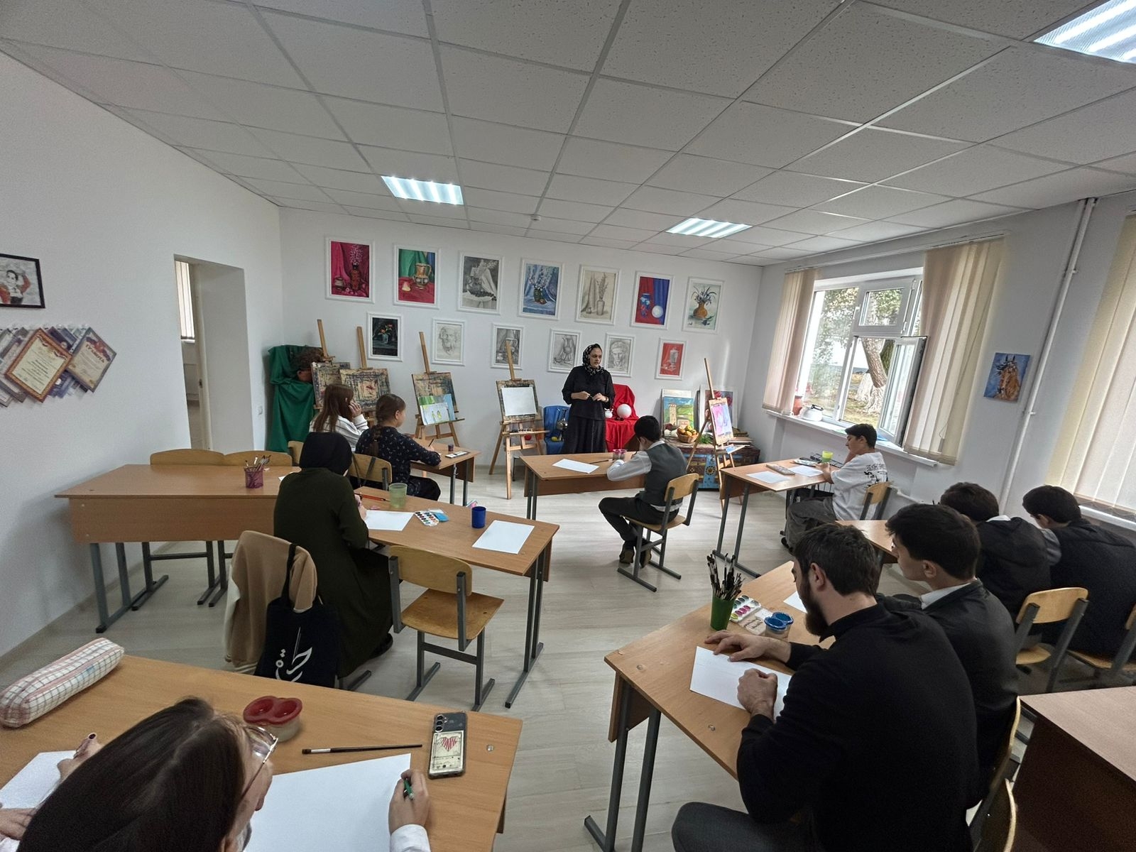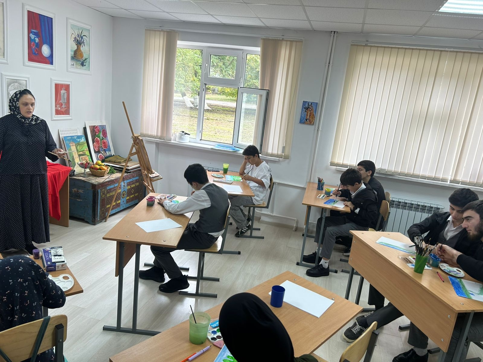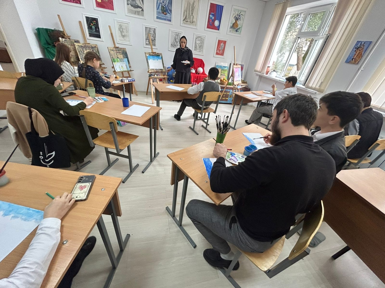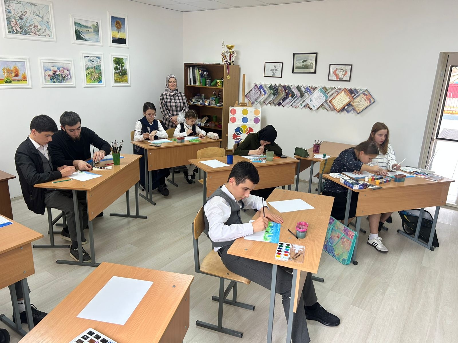 Сегодня 15 октября в ГБУ ДО «Детская школа искусств №9» г.Грозного провели для обучающихся 8 Г класса, мастер-класс по живописи «Рисуем вместе». Сопровождал их классный руководитель Сайдулаев А.Л.