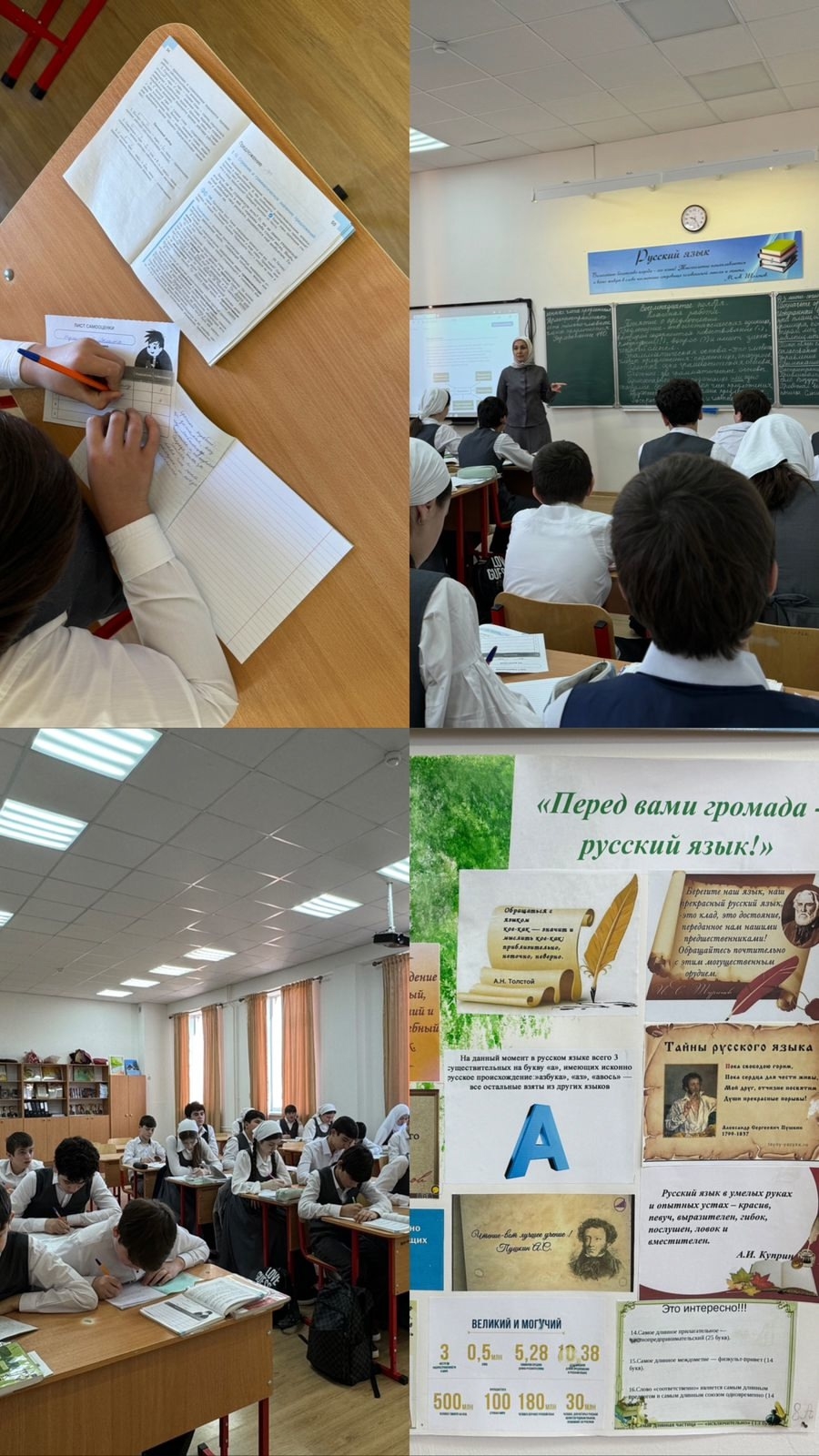 18.11.2024В ГБОУ "Гудермесская СШ им У. А. Оздамирова" 18.11.2024 г. учитель русского языка и литературы Саидова Заира Жамалдиновна провела открытый урок по русскому языку в 8 А классе на тему: "Понятие о предложении. Основные принципы предложения", приуроченный Неделе русского языка и литературы. Цели урока: повторить изученное раннее о предложении, его грамматической основе, показать роль предложений в языке, проявлять интерес к языку. На уроках русского языка обучающиеся учатся слушать собеседника и вести диалог, излагать свое мнение и аргументировать свою точку зрения, находить общие решения.