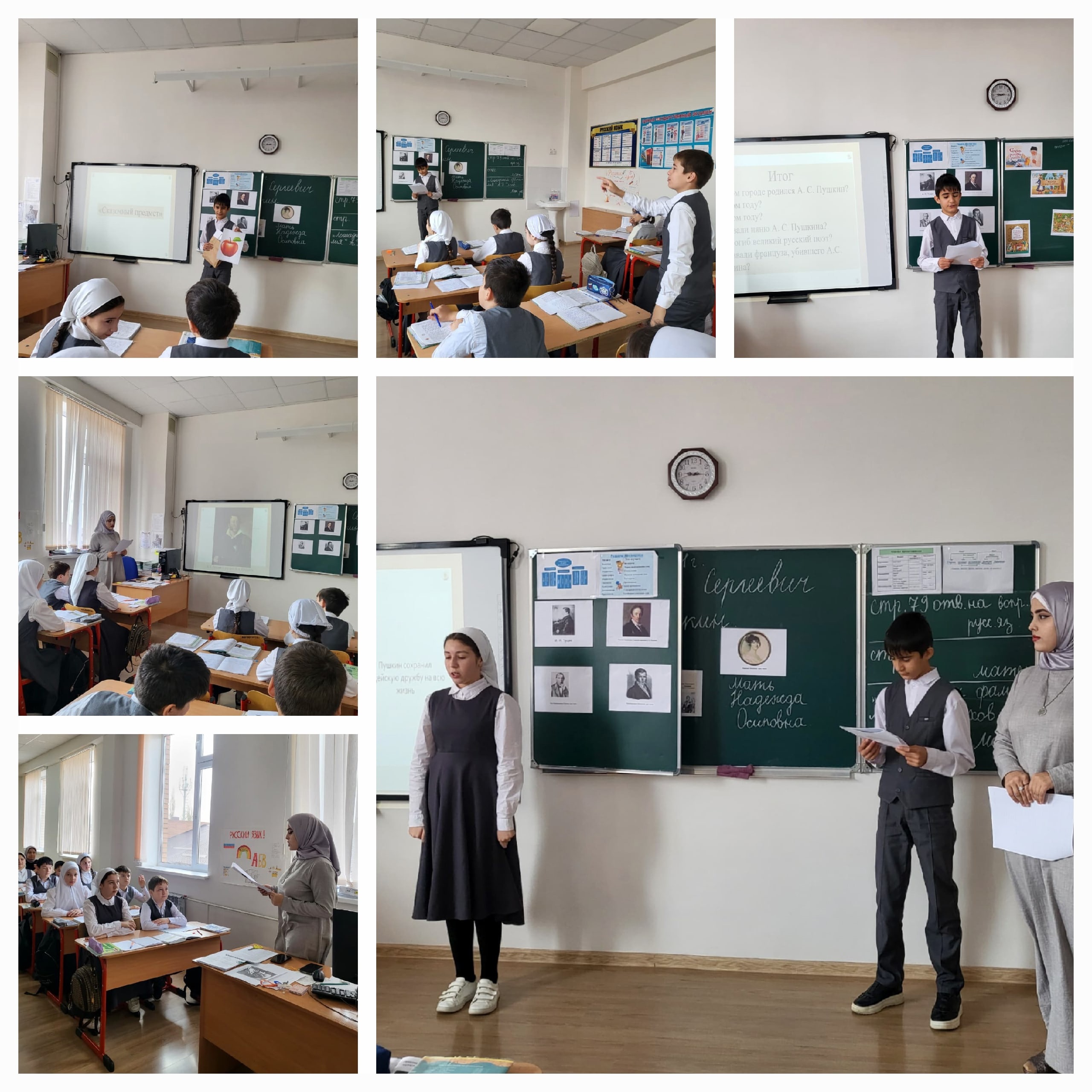 19.11.2024В ГБОУ "Гудермесская СШ им У. А. Оздамирова" 19.11.24 г. учитель русского языка и литературы Кудусова Жайна Умаровна провела открытый урок по русскому языку в 6 А классе на тему: "Александр Сергеевич Пушкин", приуроченный Неделе русского языка и литературы.