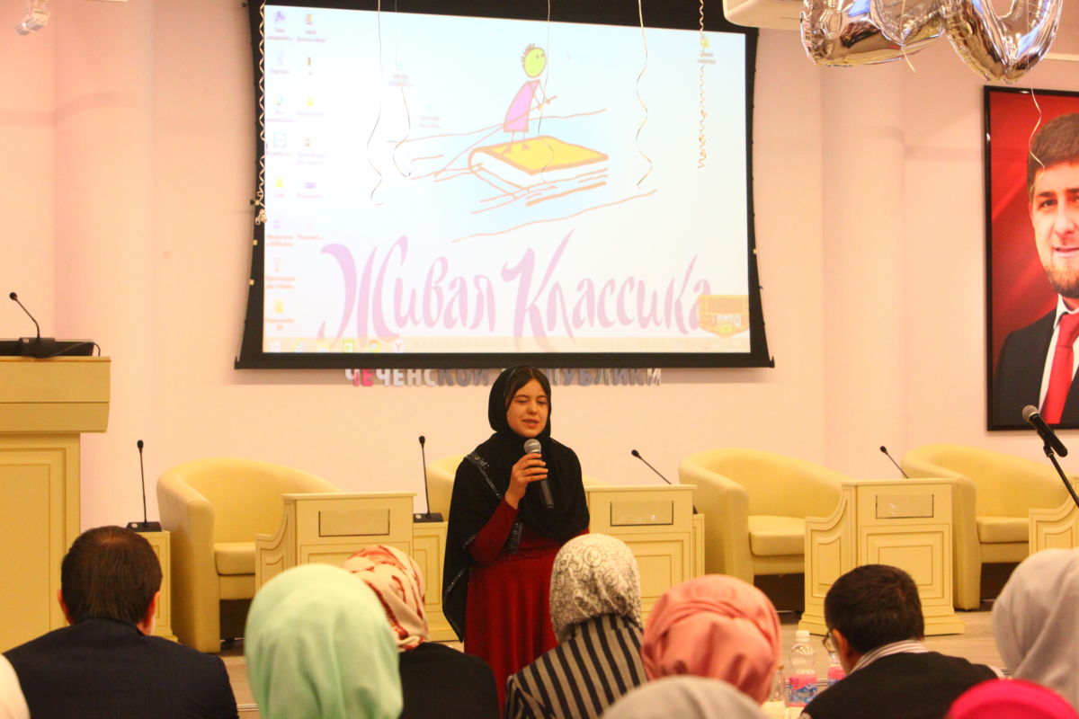 В нем принимают участие министр образования и науки ЧР Исмаил Байханов, президент фонда «Живая классика» Марина Смирнова, а также участники конкурса и их родители.