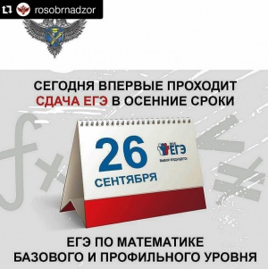 26 сентября – ЕГЭ по математике (базовый и профильный уровни)