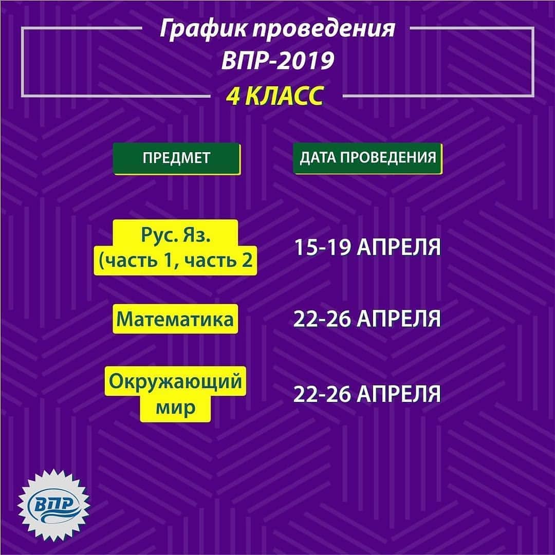 01.02.2019@ibaykhanov Уважаемые коллеги! Представляем вашему вниманию расписание проведения Всероссийских проверочных работ в 2019 году.