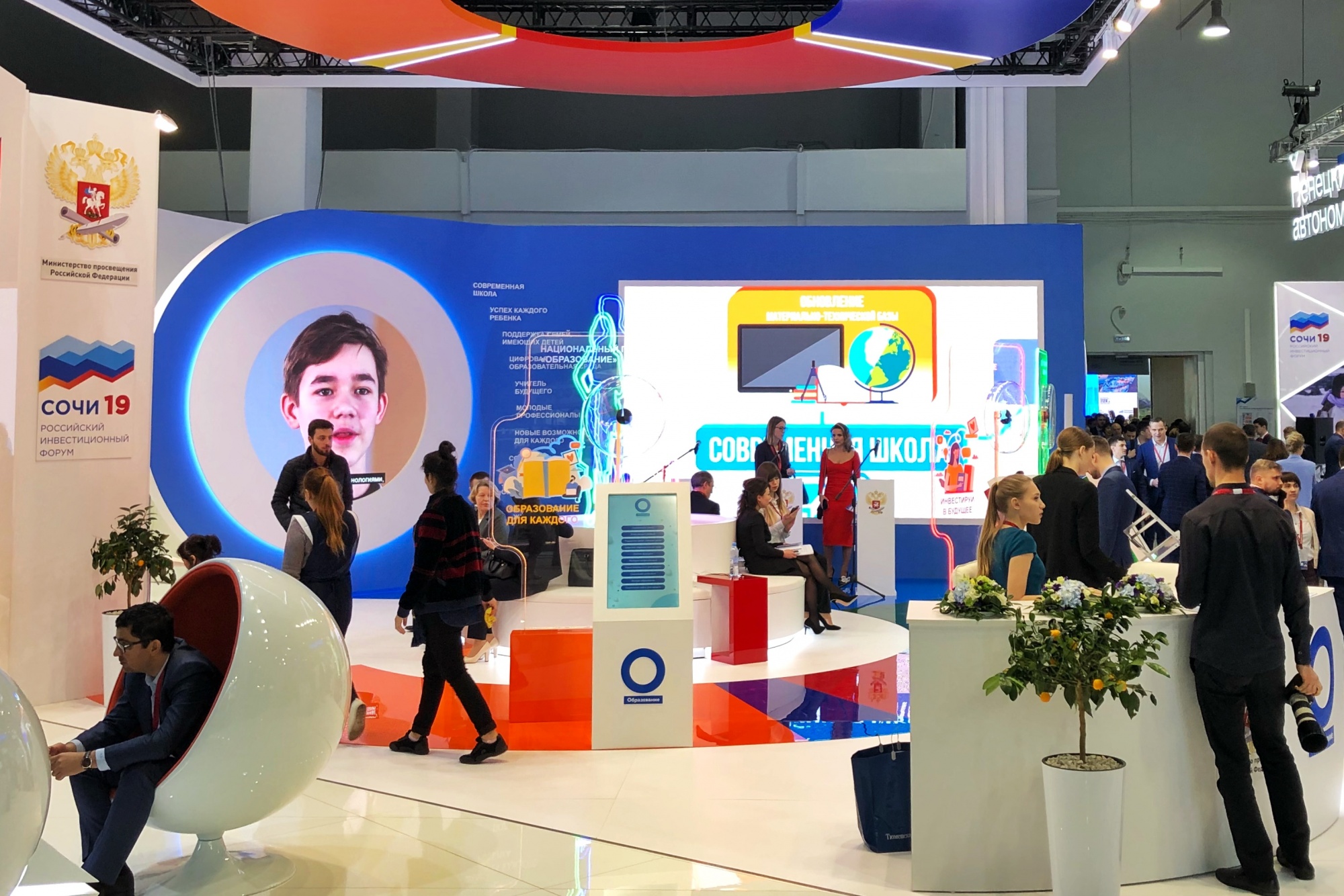 Впервые на Российском инвестиционном форуме появился стенд Минпросвещения России. Он посвящён национальному проекту «Образование», а также проектам по строительству детских технопарков «Кванториум», ранней профориентации детей и молодёжи через конкурсы профессионального мастерства «Ворлдскиллс», возможностям для развития, оздоровления и отдыха детей.
