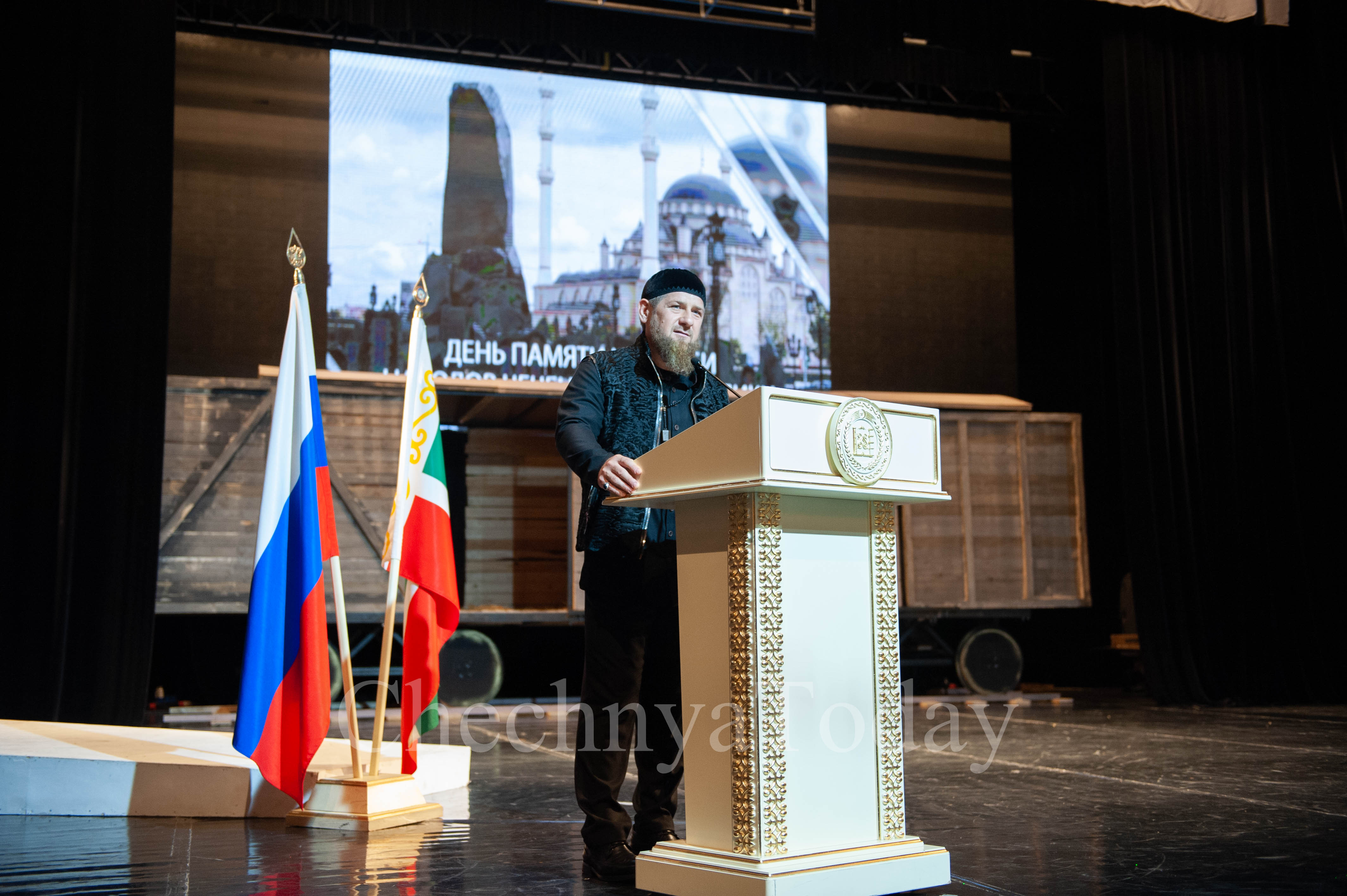 В Государственном театрально-концертном зале г. Грозного состоялось собрание, приуроченное ко Дню памяти и скорби народов Чеченской Республики.