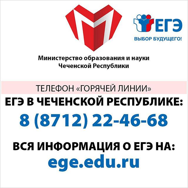 12.11.2015По поручению Главы ЧР Р.А. Кадырова Министерство образования и науки с 10 по 24 ноября текущего года проводит общерайонные и общегородские родительские собрания, посвященные подготовке обучающихся к Единому государственному экзамену.График проведения встреч с родительской общественностью выглядит следующим образом:10.11.2015 - Гудермесский район, ДДТ г. Гудермес, 15.00;10.11.2015 - Урус-Мартановский район, Урус-Мартан РДК, 11.00;11.11.2015 - Грозненский район, СОШ №1 с. Толстой-Юрт, 11.00;12.11.2015 - Итум-Калинский, Итум-Кали, РДК, 11.00;12.11.2015 - г. Грозный, Гимназия №1, 16.00;13.11.2015 - г. Грозный, СОШ №11, 16.00;14.11.2015 - Надтеречный район, Верхний Наур СДК, 11.00;16.11.2015 - Шатойский район, РДК с.Шатой, 14.00;17.11.2015 - Ачхой-Мартановский район, Управление образованием, 14.3017.11.2015 - Ножай-Юртовский район, РДК с.Ножай-Юрт, 11.00;18.11. 2015 - Шаройский район, с.Химой, Администрация района, 11.00;19.11.2015 - Веденский район, СОШ №2 с. Ведено, 14.00;20.11.2015 - Шелковской район, СОШ №1 ст. Шелковская, 11.00;20.11.2015 - г. Грозный, СОШ №20, 16.00;21.11.2015 - г. Грозный, СОШ №18, 16.00;21.11.2015 - Курчалоевский район, с. Курчалой, РДК, 11.00;21.11.2015 - Шалинский район, Шали, РДК, 11.00;23.11.2015 - Наурский район, РДК с.Наур, 11.00;24.11.2015 - г.Аргун, Гимназия №13 г.Аргун, 14.00;26.11.2015 - Сунженский район, Отдел образования, 15.00;#ЕГЭ2016 #КАЧЕСТВЕННОЕОБРАЗОВАНИЕ